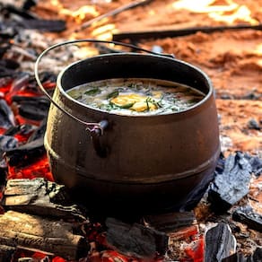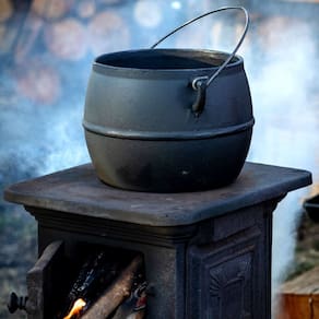 O Caldeirão Bojudo Tampa de Ferro da Panela Mineira possui um estilo retrô, que remonta a estética de panelas e caçarolas antigas, com fundo reto preto, laterais altas e abauladas, além de uma tampa moderna. Sua excelente distribuição e retenção de calor, característico do ferro fundido, enaltece o sabor e aroma dos alimentos, o tornando ideal para cocções prolongadas. Muito utilizado em buffets de restaurantes e hotéis no preparo de arroz, feijão, carnes, legumes, caldos, ensopados e mais.