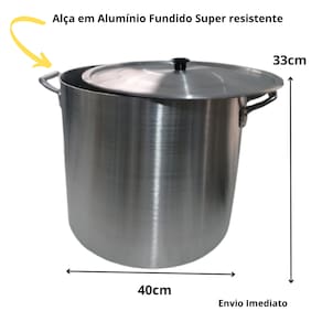 Item na Compra : 1un Caldeirão Industrial Alumínio Nº40 Hotel com tampa 40 Medidas (Aproximadas):- Altura: 33 cm- Diâmetro: 40 cm- Espessura: 3 mm- Capacidade: 36 Litros