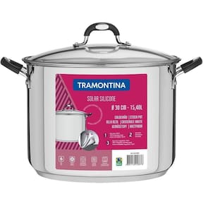 A Linha Solar da Tramontina é aquele clássico com design atemporal, grandes funcionalidades e a praticidade que precisamos no cotidiano. Os produtos são feitos em aço inox, garantindo grande resistência e durabilidade, ainda com um fundo triplo (aço inox + alumínio + aço inox) que distribui o calor, gerando um cozimento rápido e uniforme. Acabamento em alto brilho é o detalhe que mais chama a atenção nesse item, mas ele também possui um desenho limpo e sem cantos que facilita a higienização, além de deixar a peça ainda mais elegante e moderna. E o melhor de tudo são as alças e pegadores produzidos com silicone, deixando o manuseio mais seguro ao evitar a propagação do calor. Características: Marca: Tramontina Código do Fabricante: 62125300 Linha: Solar Silicone Cor: Inox Material: Aço inox Material da Alça/Pegador: Silicone Fundo Triplo: Sim Espessura: 0,6mm Capacidade: 15,4L Diâmetro: 30cm Fogões Compatíveis: Gás, elétrico, vitrocerâmico e indução Compatível com Lava-louças: Sim Compatível com Forno: Não Material da Tampa: Vidro temperado Saída de Vapor: Sim
