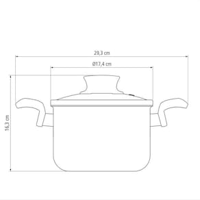 Corpo de alumínio com espessura de 1,8 mm que proporciona cozimento rápido e uniforme. Revestimento interno e externo de antiaderente Starflon Max que não gruda, é fácil de limpar, mais durável e não é prejudicial à saúde, pois é livre de PFOA. Tampa de vidro temperado, com saída de vapor e borda de aço inox. Alças de baquelite antitérmico e pegador de nylon que oferecem segurança durante o manuseio. Pode ir à máquina de lavar louças facilitando seu dia a dia.
