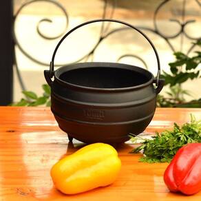 O Caldeirão Tripé Com Arco e Tampa de Ferro da Panela Mineira é o tradicional caldeirão de ferro, em um estilo retrô que remonta o design de caçarolas e tachos antigas. Possui uma base e fundo arredondado, além de 03 pezinhos como apoio. Sua perfeita distribuição e retenção do calor promove uma cocção prolongada que enaltece o sabor e aroma dos alimentos. Pode ser utilizado para preparar diversas receitas, como caldos, tropeiros, carreteiros, carnes, copas, polentas, peixes, entre outros. Muito utilizada em evento pela sua apresentação e por manter-se quente por muito mais tempo.