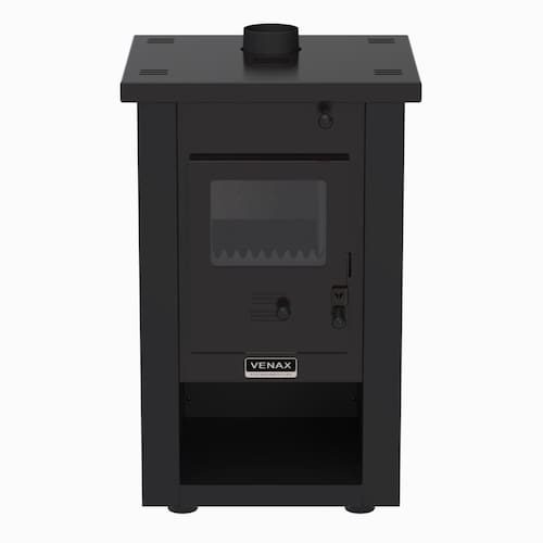 Tipo: Calefator a lenha Marca: Venax Sistema de queima: Dupla combustão Sistema de controle de combustão: Sim Fornalha: Tijolos refratários pré-moldados Porta da fornalha: Vidro vitrocerâmico Tranca na porta da fornalha: Sim Gaveta de cinzas: Aço esmaltado Base para armazenamento de lenha: Sim Puxadores: Baquelite Guarnições das portas: Chapa de aço Pés: 4 pés reguláveis Revestimento corpo do fogão: Pintura eletrostática Saída da chaminé: Central na parte superior Medidas do produto: Altura 92,5cm - Largura 56cm - Profundidade 56cm
