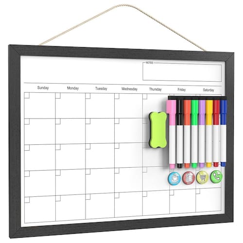 - Calendário de quadro branco – Este calendário de parede apagável a seco pode ser utilizado como um quadro de planejamento mensal e semanal, quadro de notas, quadro de avisos ou quadro de apresentação.