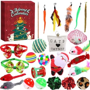 - 1. ?Várias combinações de brinquedos interativos para gatos:?Este calendário do advento apresenta uma variedade de 24 brinquedos, incluindo ratos de pelúcia, camundongos com penas e bolas de sino, projetados para estimular a curiosidade e os instintos de caça do seu gato. Todos os dias, seu amigo felino desfrutará de uma nova surpresa.