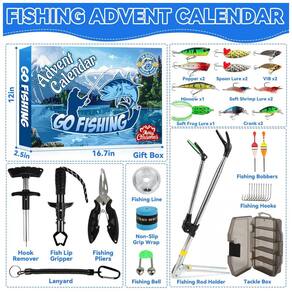 Com o Calendário de Advento de Pesca 2025, descubra uma surpresa de pesca a cada dia até o Natal. A maneira perfeita de fazer a contagem regressiva para o Natal, adicionando diversão à sua festividade. Este calendário inclui 24 peças surpresa, como Pegador de Boca de Peixe, Removedor de Anzol, Alicates de Pesca, Suporte de Vara de Pesca, entre outras ferramentas e diversas iscas de pesca. Presente de Natal ideal para homens, adultos, adolescentes, amantes da pesca e pescadores, trazendo alegria durante a temporada de festas. À medida que cada dia passa, descubra uma nova surpresa e adicione ao seu arsenal de pesca. O kit versátil de pesca é ideal para todos que amam pescar, proporcionando alegria e surpresas diárias até o Natal. Seja pescando em lagos de água doce ou testando suas habilidades em ambientes de água salgada, nosso kit de iscas de pesca está pronto para a tarefa. Este é o presente definitivo para pescadores de todos os níveis, desde iniciantes até pescadores experientes.