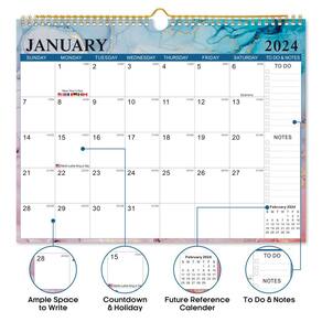 Amplo espaço para sua vida: grades de grande formato (1,69" x 1,69") que aguardam suas datas especiais e aniversários. Adote um controle eficaz de prazos e uma organização meticulosa. O calendário também apresenta referências mensais passadas e futuras, notas e lembretes gentis dos principais feriados.