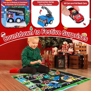 -?Conjunto econômico do Calendário do Advento?Carros retráteis × 24, tapete de brincar × 1, incluindo carros de corrida, veículos de engenharia, caminhões de bombeiros, carros de polícia e carros de trânsito urbanos; este calendário do advento oferece 24 dias de surpresas, com lindos carros retráteis escondidos atrás de cada janela, tornando a contagem regressiva de Natal divertida e memorável para as crianças. Todos os dias, as crianças podem revelar um novo carro ou veículo retrátil, criando entusiasmo à medida que o feriado se aproxima.