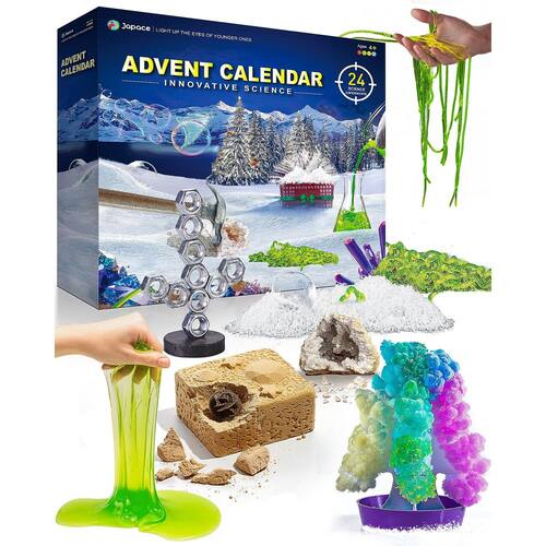 CONDUZA 24 EXPERIÊNCIAS INTERESSANTES - Cultive cientistas iniciantes a partir deste feriado de Natal! As crianças podem realizar experimentos e químicos, como cavar uma pedra preciosa, abrir um geodo e encontrar cristais em seu interior, cultivar cristais, produzir lodo, conduzir brilho no escuro, criar vermes poliméricos, fazer árvores de Natal e muito mais. O experimento será a primeira coisa que eles farão quando acordarem todas as manhãs!