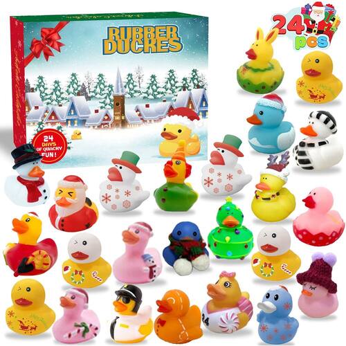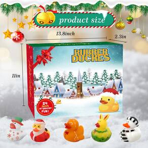 - Calendário de contagem regressiva de Natal de 24 dias: o calendário do Advento contém 24 peças de patos de borracha de Natal com personagens diferentes. As crianças abrirão uma porta por dia e encontrarão um pato de borracha diferente e exclusivo. As crianças receberão um presente surpresa todos os dias da contagem regressiva
