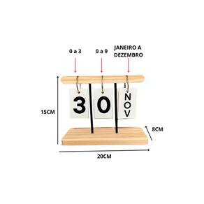 Calendário de Mesa Base de Madeira Permanente com Argolas Cartões Dia e Mês Decoração Escritório Home Office Nosso novo modelo de calendário chegou para dar um toque especial seja no seu quarto, sala, cozinha ou home office. Também é um ótimo presente.