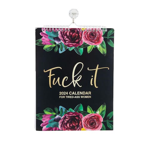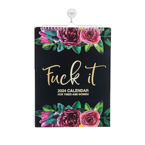 Calendário Fuck It 2024, calendário mensal Funny Novelty, calendário de flores, memorando para mulheres cansadas com gancho, calendário suspenso para escritório doméstico