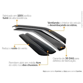 Com nossas calhas mesmo em dias chuvosos nos permitem de abrir as janelas de 4cm a 6cm dependendo do nível da chuva, e reduzindo os ruídos dos ventos quando a janela estiver aberta dando a possibilidade de ventilar o carro. MODELO: Calha de Chuva para Renault Nova Duster 2020 a 2021 4 Portas. Especificação Técnica: - 100% Acrílico - Modelo específico do veículo - Tamanho padrão de fábrica - Cor Fumê - Reduz ruídos do vento - Permite abrir em média 4cm do vidro em dias chuvosos - Possui sistema de fixação por fita 3M - Acompanha 1 Primer para limpeza ITENS INCLUSOS: - 1 Conjunto de Calha de Chuva. - 1 Primer para limpeza DIMENSÕES Tamanho padrão conforme as especificações da montadora. INSTALAÇÃO A instalação é feita de forma simples, podendo ser feita por você mesmo. de 30 dias para defeitos de fabricação. SOBRE O ENVIO Marca: Não Informado Ean: 7896104691809