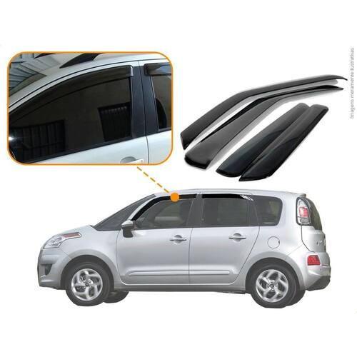 Com nossas calhas mesmo em dias chuvosos nos permitem de abrir as janelas de 4cm a 6cm dependendo do nível da chuva, e reduzindo os ruídos dos ventos quando a janela estiver aberta dando a possibilidade de ventilar o carro. Modelo: Calha de chuva para citroen c3 picasso 2012 a 2019 4 portas. Especificação técnica: - 100% acrílico - modelo específico do veículo - tamanho padrão de fábrica - cor fumê - reduz ruídos do vento - permite abrir em média 4cm do vidro em dias chuvosos - possui sistema de fixação por fita 3m - acompanha 1 primer para limpeza Itens inclusos: - 1 conjunto de calha de chuva. - 1 primer para limpeza Dimensões Tamanho padrão conforme as especificações da montadora. Instalação A instalação é feita de forma simples, podendo ser feita por você mesmo. de 30 dias para defeitos de fabricação. Sobre o envio Marca: Não Informado