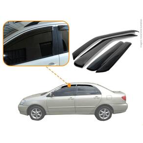 Com nossas calhas mesmo em dias chuvosos nos permitem de abrir as janelas de 4cm a 6cm Dependendo do nível da chuva, e reduzindo os ruídos dos ventos quando a janela estiver aberta Dando a possibilidade de ventilar o carro. MODELO: Calha de Chuva 100% Acrílico do Toyota Corolla 2003 a 2007 4 Portas. Especificação Técnica: - 100% Acrílico - Modelo específico do veículo - Tamanho padrão de fábrica - Cor Fumê - Reduz ruídos do vento - Permite abrir em média 4cm do vidro em dias chuvosos - Possui sistema de fixação por fita 3M - Acompanha 1 Primer para limpeza ITENS INCLUSOS: - 1 Conjunto de Calha de Chuva. - 1 Primer para limpeza DIMENSÕES Tamanho padrão conforme as especificações da montadora. INSTALAÇÃO A instalação é feita de forma simples, podendo ser feita por você mesmo. de 30 dias para defeitos de fabricação. Marca: Não Informado Ean: 7897205111258