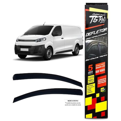 Calha Chuva Defletor Tg Poli Citroen Jumpy 2018 A 2022 - 4 Portas DESCRIÇÃO: - Calhas na cor fumê padrão TG Poli e auto adesivas dupla face 3M . - Produto com manual de instalação. - Jogo completo calha para ambos os lados . - Calhas de acrílico com 5 anos de garantia contra defeitos de fabricação.