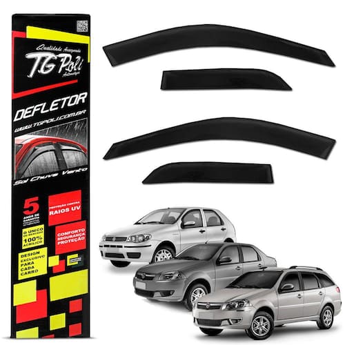 Defletor de chuva Tgpoli Fiat Palio Siena 1996 a 2016 Palio Weekend 2016 a 2020 Fumê Acrílico 4 Portas
