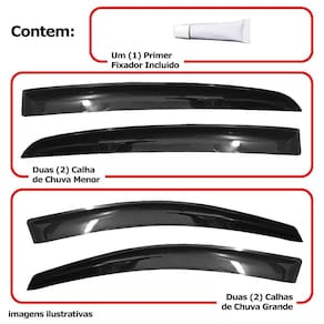 Com nossas calhas mesmo em dias chuvosos nos permitem de abrir as janelas de 4cm a 6cm dependendo do nível da chuva, e reduzindo os ruídos dos ventos quando a janela estiver aberta dando a possibilidade de ventilar o carro. Modelo: Calha de chuva para chevrolet vectra sedan 2006 a 2011 4 portas. Especificação técnica: - 100% acrílico - modelo específico do veículo - tamanho padrão de fábrica - cor fumê - reduz ruídos do vento - permite abrir em média 4cm do vidro em dias chuvosos - possui sistema de fixação por fita 3m - acompanha 1 primer para limpeza Itens inclusos: - 1 conjunto de calha de chuva. - 1 primer para limpeza Dimensões Tamanho padrão conforme as especificações da montadora. Instalação A instalação é feita de forma simples, podendo ser feita por você mesmo. de 30 dias para defeitos de fabricação.