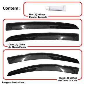 Com nossas calhas mesmo em dias chuvosos nos permitem de abrir as janelas de 4cm a 6cm dependendo do nível da chuva, e reduzindo os ruídos dos ventos quando a janela estiver aberta dando a possibilidade de ventilar o carro. Modelo: Calha de chuva para chevrolet vectra sedan 2006 a 2011 4 portas. Especificação técnica: - 100% acrílico - modelo específico do veículo - tamanho padrão de fábrica - cor fumê - reduz ruídos do vento - permite abrir em média 4cm do vidro em dias chuvosos - possui sistema de fixação por fita 3m - acompanha 1 primer para limpeza Itens inclusos: - 1 conjunto de calha de chuva. - 1 primer para limpeza Dimensões Tamanho padrão conforme as especificações da montadora. Instalação A instalação é feita de forma simples, podendo ser feita por você mesmo. de 30 dias para defeitos de fabricação. Marca: Não Informado Ean: 7897181516528