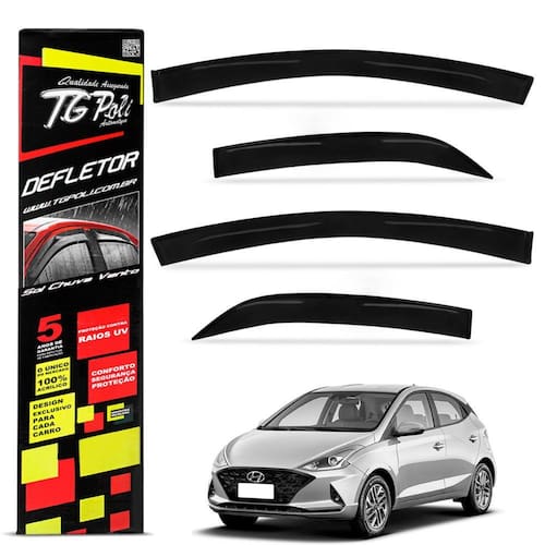 Defletor de chuva Tgpoli HB20 Hatch 2020 a 2023 Fumê Acrílico 4 Portas Inteiriça
