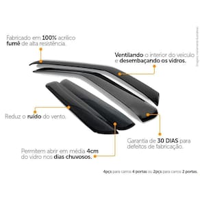 Feita em 100% acrílico, a calha é específica para o modelo Kia Soul 2016 a 2019 de 4 portas. Ela possui tamanho padrão de fábrica e cor fumê, combinando perfeitamente com o design do seu veículo.