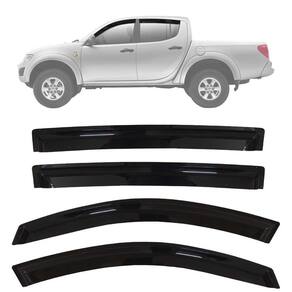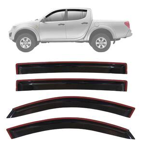 Calha de chuva mitsubishi l200 triton 07/15 4 portas Com nossas calhas mesmo em dias chuvosos nos permitem de abrir as janelas de 4cm a 6cm Dependendo do nível da chuva, e reduzindo os ruídos dos ventos quando a janela estiver aberta Dando a possibilidade de ventilar o carro.
