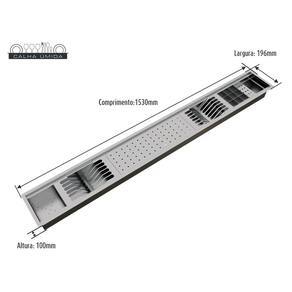 Dimensões: 1530 x 196 x 100 mm (CxLxA) Dimensões para recorte no tampo: 1510 x 175 mm (CxL)