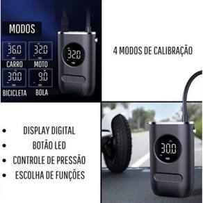 Compressor de ar portátil digital superpotente com lanterna, recarregável bivolt, compatível com qualquer tipo de carro, moto e bicicleta e diversos infláveis. Configurável até 150 psi/libras