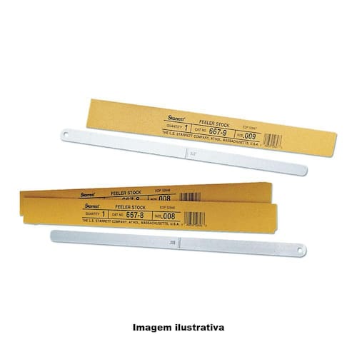Calibrador de Folga em Lâmina 300 x 13 x 0,70mm Starrett 667M-70 O Calibrador de Folga em Lâmina 300 x 13 x 0,70mm Starrett 667M-70 é uma é amplamente Utilizado em trabalhos automotivos, em aviação, na fabricação e manutenção de equipamentos agrícolas, bem como em trabalhos de gabaritos, dispositivos e trabalhos experimentais. - Extremidades arredondadas: as arestas lisas tornam as lâminas fáceis de ser manuseadas; - Feitos com o mais fino aço temperado; - Cada peça marcada com a espessura exceto 667-1/2 e embalada individualmente; - Conveniente furo de 5mm 3/16 estampado na extremidade para pendurar; Especificações técnicas - Espessura: 0,70mm; - Nº Catálogo: 667M-70; - Nº EDP: 61948; Geral - Marca: Starrett; - Código: 667M-70; - Código de barras: TECNO79376064; Itens inclusos --- Itens opcionais - Certificado de Calibração com rastreabilidade Inmetro/RBC; - Contra defeito de fabricação diretamente com o fabricante; Atenção A imagem aqui apresentada é meramente ilustrativa e foi fornecida pelo fabricante. Ela não reflete as dimensões reais do produto. Para decisão de compra considerar a descrição e especificação técnica do produto. Ean: 7891265735126