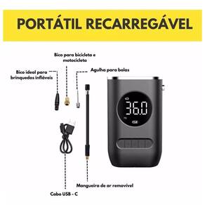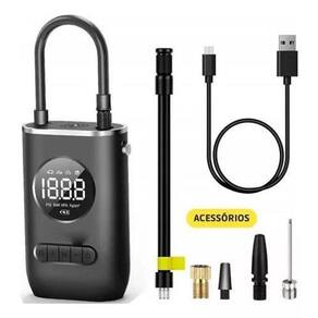 Calibrador de Pneus Digital Sem Fio - Precisão Conveniente para Manter seus Pneus em Boas Condições Compressor Portátil com bateria interna de 2000mah Recarregável, com visor digital . 1 - Sem fio, não necessita de conexão ao acendedor de . 2 - Compacto - Cerca de Altura 13,7 cm X Largura 8,9 cm, O tamanho é equivalente a um Smartphone com tela de 4,7, podendo caber facilmente no porta luvas, na moto ou em sua mochila. 3 - Leve - Peso de cerca de 395 gramas. 4 - Possui uma pequena lanterna para operação em locais de baixa iluminação. 5 - Interface de carregamento via cabo USB - Type C , mais rápido que os tradicionais incluso no kit . 6 - Acompanha bico para pneu com rosca sem perigo de soltar como as de alavanca , bico de pneu rápido, bico para bola, 2 bicos para infláveis e cabo de carregamento. OBS: Pausar por 5 minutos depois de usar por 10 minutos. Caso contrário, a temperatura crescente do escudo de metal danificará o motor. Especificação: Material: ABS 10A Tensão: 7,4V Potência: 50W Fluxo de ar: 25L / min Tipo de fonte de alimentação: TYPE-C Comprimento do cabo de alimentação: 0,8 metros Comprimento do tubo inflável: 0,5 Marca: Não Informado