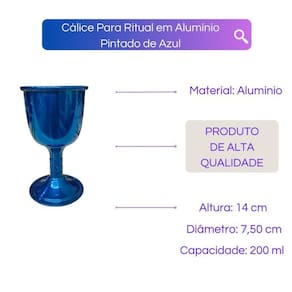 Cálice Para Ritual em Alumínio Pintado de Azul 14cm 200 ml Descubra a magia com nosso Cálice de Rituais e Missas em Alumínio. Com 14cm de altura e capacidade para 200ml, este cálice une elegância e praticidade.