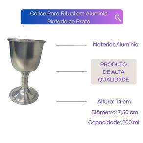 Cálice Para Ritual em Alumínio Pintado de Prata14cm 200 ml Descubra a magia com nosso Cálice de Rituais e Missas em Alumínio. Com 14cm de altura e capacidade para 200ml, este cálice une elegância e praticidade. Ideal para rituais, Missas e celebrações, seu design em alumínio adiciona um toque místico aos seus momentos especiais. Adquira agora e eleve sua experiência ritual a novas alturas. -utilizado em várias cerimonias e rituais de diversas religiões, e também em igrejas católicas. Medidas: Capacidade: 200ml Altura: 14 cm Diâmetro: 7,5 cm Não escurece e nem descasca. Imagens meramente ilustrativas. Gratidão e Sucesso Tire todas as suas Dúvidas antes de concluir a compra. Iremos responder o mais breve possível. Embalagem de Envio: Caixa de papelão ondulado, plástico bolha, conforme necessidade do produto. Respostas das dúvidas mais frequentes na ordem: R1: Já realizamos milhares de entregas em todo o Brasil, somos especialistas no que fazemos. R2: Assim que seu pedido for despachado, esta plataforma envia para você o código de rastreamento. R3: Enviamos o produto 100% inspecionado e conferido em nosso checkout e são embalados em embalagem de papelão e plástico bolha. R4: O tempo de entrega irá depender totalmente do seu CEP, todos os nossos produtos saem de Capital. R5: Iremos despachar o seu produto o mais rápido possível, assim que for confirmado pela plataforma, enviamos em até 24h. R6: Nós queremos a sua satisfação, qualquer problema iremos te auxiliar em nossos canais de comunicações. Marca: Não Informado