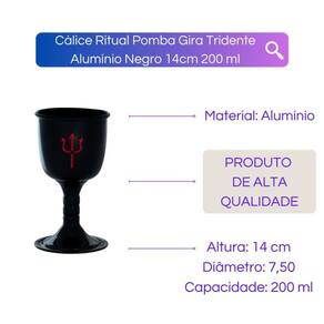 Cálice Ritual Pomba Gira Tridente Alumínio Negro 14cm 200 ml Descubra a magia com nosso Cálice de Rituais e Missas em Alumínio. Com 14cm de altura e capacidade para 200ml, este cálice une elegância e praticidade. Ideal para rituais, Missas e celebrações, seu design em alumínio adiciona um toque místico aos seus momentos especiais. Adquira agora e eleve sua experiência ritual a novas alturas. -utilizado em várias cerimonias e rituais de diversas religiões, e também em igrejas católicas. Medidas: Capacidade: 200ml Altura: 14 cm Diâmetro: 7,5 cm Não escurece e nem descasca. Imagens meramente ilustrativas. Gratidão e Sucesso Tire todas as suas Dúvidas antes de concluir a compra. Iremos responder o mais breve possível. Embalagem de Envio: Caixa de papelão ondulado, plástico bolha, conforme necessidade do produto. Respostas das dúvidas mais frequentes na ordem: R1: Já realizamos milhares de entregas em todo o Brasil, somos especialistas no que fazemos. R2: Assim que seu pedido for despachado, esta plataforma envia para você o código de rastreamento. R3: Enviamos o produto 100% inspecionado e conferido em nosso checkout e são embalados em embalagem de papelão e plástico bolha. R4: O tempo de entrega irá depender totalmente do seu CEP, todos os nossos produtos saem de Capital. R5: Iremos despachar o seu produto o mais rápido possível, assim que for confirmado pela plataforma, enviamos em até 24h. R6: Nós queremos a sua satisfação, qualquer problema iremos te auxiliar em nossos canais de comunicações. Marca: Não Informado