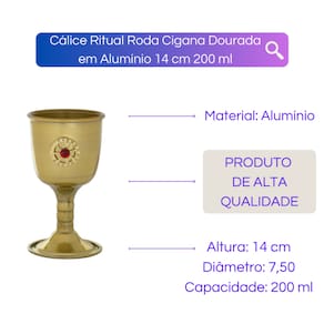 Cálice Ritual Roda Cigana Dourada em Alumínio 14 cm 200 ml