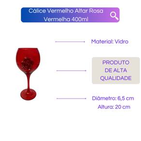 Cálice Vermelho Altar Rosa Vermelha 400ml 20cm Vidro Celebra