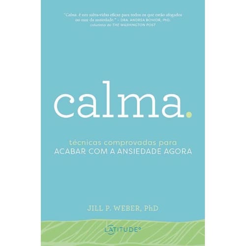 Título do livro : Calma. Subtítulo do livro : Técnicas Comprovadas para acabar com a Ansiedade Agora Série : Volume Único Autor : Weber, PhD, Jill P. Idioma : Português Editora do livro : Vergara & Riba Editoras Capa do livro : Mole Ano de publicação : 2021 Quantidade de páginas : 260 Altura : 210 mm Largura : 140 mm Peso : 264 g Data de publicação : 01-04-2021 Gênero do livro : Autoajuda