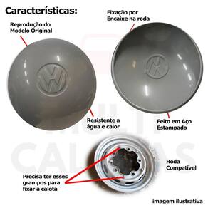 Centro de roda produzida em metal estampado com cromado autêntico. Possuindo segura e prática aplicação através de grampos na roda. Calota Centro de Roda para o Volkswagen Fusca Kombi anos 1970. CARACTERÍSTICAS: - Calota em Metal Estampado - Cor: cinza com brilho - Modelo: Standard - Fixação: Grampos na Roda não inclusos - Alta Qualidade e Resistência ITENS INCLUSOS: - 1 Calota Centro de Roda. DIMENSÕES: individual - Diâmetro: 26.5 cm - Altura: 6 cm INSTALAÇÃO A instalação é feita de forma simples, podendo ser feita por você mesmo. de 30 dias para defeitos de fabricação. SOBRE O ENVIO Envio podendo ser feito até o próximo dia útil após confirmação de pagamento. em até 3 , em caso de boleto POLÍTICA DE TROCA Sempre estamos interessados em sua satisfação. Caso não receba o produto exatamente como no anúncio, com algum defeito ou no transporte, Você poderá trocar e devolver a qualquer momento, sem pressa, sem prazo e principalmente sem custos desde que o produto esteja sem uso e na mesma condição da data da compra . No caso de devolução por compra de tamanho errado, desistência ou mudança de intenção, Neste caso o cliente deve arcar com o custo da devolução da mercadoria e nós arcamos com o custo de reenvio Da mercadoria nova. Marca: Não Informado Ean: 7891412106922