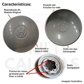 Centro de roda produzida em metal estampado com cromado autêntico. Possuindo segura e prática aplicação através de grampos na roda. Calota Centro de Roda para o Volkswagen Fusca Kombi anos 1970. CARACTERÍSTICAS: - Calota em Metal Estampado - Cor: cinza com brilho - Modelo: Standard - Fixação: Grampos na Roda não inclusos - Alta Qualidade e Resistência ITENS INCLUSOS: - 1 Calota Centro de Roda. DIMENSÕES: individual - Diâmetro: 26.5 cm - Altura: 6 cm INSTALAÇÃO A instalação é feita de forma simples, podendo ser feita por você mesmo. de 30 dias para defeitos de fabricação. SOBRE O ENVIO Envio podendo ser feito até o próximo dia útil após confirmação de pagamento. em até 3 , em caso de boleto POLÍTICA DE TROCA Sempre estamos interessados em sua satisfação. Caso não receba o produto exatamente como no anúncio, com algum defeito ou no transporte, Você poderá trocar e devolver a qualquer momento, sem pressa, sem prazo e principalmente sem custos desde que o produto esteja sem uso e na mesma condição da data da compra . No caso de devolução por compra de tamanho errado, desistência ou mudança de intenção, Neste caso o cliente deve arcar com o custo da devolução da mercadoria e nós arcamos com o custo de reenvio Da mercadoria nova. Marca: Não Informado