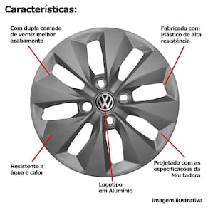 Calota gol voyage g5 g6 g7 aro 14 grafit logo alumínio 112cb Calota em plástico de alta resistência, Fabricado pela grid calotas com os mesmos padrões e exigências da montadora. Com logotipo incluso.