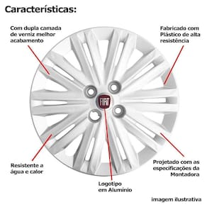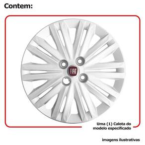 Essa calota é compatível com os seguintes modelos de veículos: Doblô, Grand Siena, Idea, Linea e Punto. Sua fixação é feita por parafusos e sua furação é de 4x100, com cubo padrão. A cor da calota é prata e sua referência é 208Cp.