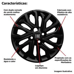 2. Qual o material de fabricação? R: A calota é fabricada em plástico resistente, com emblema em alumínio.