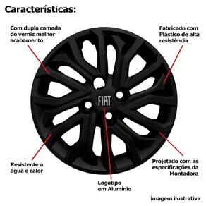 Com uma dupla camada de verniz, a calota é resistente à água e calor. Sua fixação é feita por parafusos e possui furação de 4x100 padrão. O acabamento na cor preto fosco confere um visual moderno e arrojado.