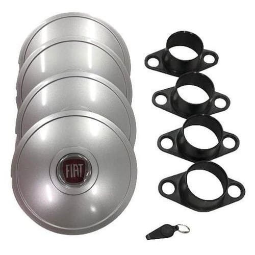 Marca: miollo Compatibilidade: rodas de ferro originais modelo fiat siena aro 13 que possuam o código jante conforme mencionado abaixo Fixação: calota encaixada no suporte (fixado em 2 parafusos) específico para cada aro/modelo com travamento que não solta Material: calota em abs e suporte em nylon com fv15% Cor da calota: prata Emblema: adesivo resinado Diâmetro da calota: 18,5 cm Conteúdo da embalagem: 4 calotas + 4 suportes de fixação + 4 emblemas + chave