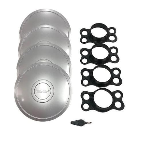 jogo de calotas de centro com suporte inovador de travamento exclusivo que não solta para valorizar a roda. Vantagens: fácil instalação; encaixe perfeito, reduzindo desconforto com barulho; maior resistência ao aquecimento da roda; protege os parafusos de fixação das rodas contra sujeira; sistema anti-perda com suporte de encaixe fixado junto ao parafuso da roda; posicionada acima da linha de atrito com a guia, evitando riscos e danos indesejados; facilidade na limpeza e conservação da roda. Marca: miollo compatibilidade: rodas de ferro modelo lifan smily aro 14 que possuam o código jante conforme mencionado abaixo fixação: calota encaixada no suporte fixado em 2 parafusos específico para cada aro/modelo com travamento que não solta material: calota em abs e suporte em nylon com fv15% cor da calota: prata diâmetro da calota: 18,5 cm conteúdo da embalagem: 4 calotas + 4 suportes de fixação + chave