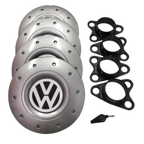 Jogo de calotas de centro miollo para vw fox aro 14 2004/2019 estilo amarok prata