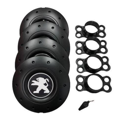 Jogo de calotas de centro miollo para peugeot 206 aro 14 2001/2008 estilo amarok preto