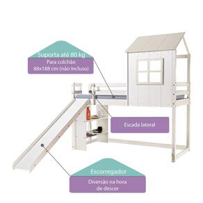 Com a Cama Alta Cabana Family da Casatema com Escada, Escorregador, Estante e Telhado, a diversão está garantida para seu filho(a), desenvolvida especialmente para o público infantil. Uma forma divertida de fazer do quarto o melhor lugar do mundo! Com estrutura em madeira maciça de área reflorestada, acabamento em laca/ cepilhado, sinônimo de qualidade e durabilidade do produto.