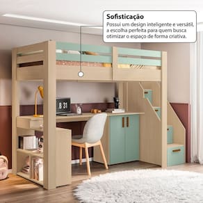 Cama Alta Infantil Star Plus Legno Salinas / Verde Bellagio - Casatema