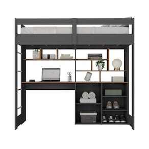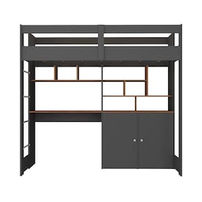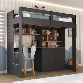 Cama Alta Infantil Juvenil 2 Portas com Escrivaninha Multifuncional Zwork Yescasa Grafite/Nogal - Cinza