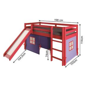 Cama Alta Kids com Escorregador e Tenda em Madeira Maciça/MDF Vermelho/Azul. A Cama Alta Kids com Escorregador e Tenda transforma o quarto do seu filho(a) em um local de alegria e diversão. Cama de qualidade produzida com madeira maciça de Pinus de reflorestamento e com algumas partes em MDF, além de ter um acabamento em Laca. A escada e o escorregador são reversíveis, ou seja, podem ser montados nos dois lados (direito e esquerdo) da cama. O escorregador vem com dois ganchos de metal para encaixe na barra lateral da cama e é de fácil remoção. A tenda é produzida de tecido e nas cores que melhor combinam com o produto e que dão encantamento ao quarto. Recomendações de Uso, Manutenção e Limpeza: Não armazenar ou utilizar o produto em locais com excesso de umidade. Para limpeza, não utilizar produtos químicos e abrasivos, usar apenas com pano umedecido, para garantir a maior durabilidade do móvel. Seguir rigorosamente as instruções de uso contidas no Manual de Montagem. Marca: Arbol Móveis