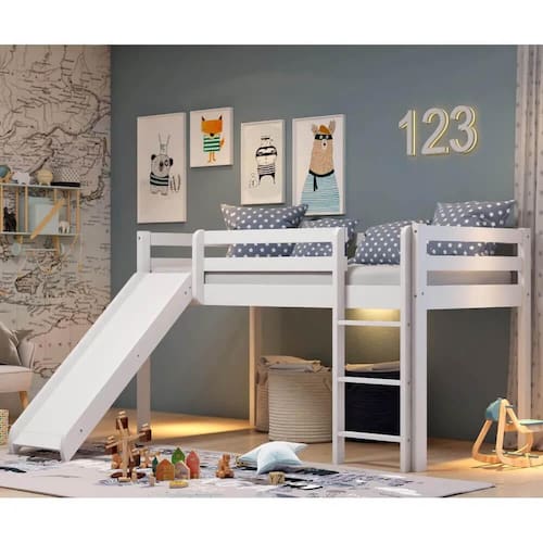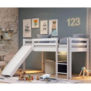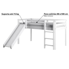 Cama Alta Kids com Escorregador em Madeira Maciça - Branca
